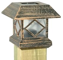 SOLAR POST CAP LIGHT - Installs in minutes (screws included) durable black plastic construction with plastic lens. White LED and AA NiCD battery included # 97125. 4.13 tall.- Solar light charges by day and glows at night