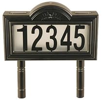 Can be staked in yard or mounted to flat surface. Address can be seen from both sides when mounted in the yard. Durable black plastic construction with plastic lens numbers and letters included. Includes white LEDs and AA NiCd battery. 24" above ground height.- Durable plastic construction